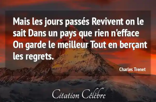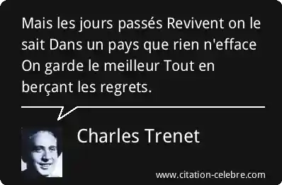 Mais les jours passés Revivent on le sait Dans un pays que rien n'efface On garde le meilleur Tout en berçant les regrets.