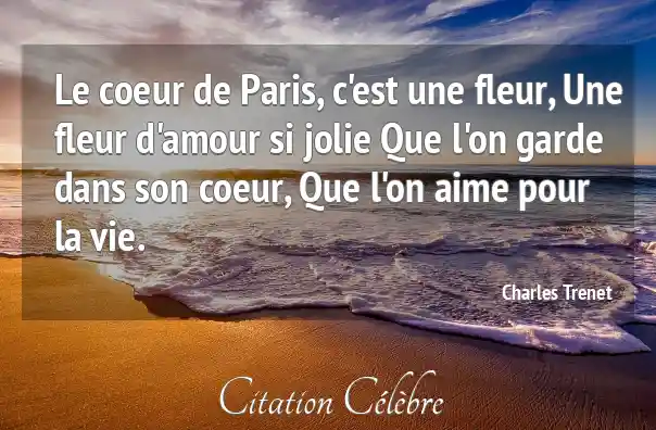 Le coeur de Paris, c'est une fleur, Une fleur d'amour si jolie Que l'on garde dans son coeur, Que l'on aime pour la vie.
