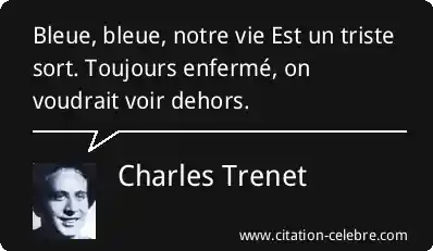 Bleue, bleue, notre vie Est un triste sort. Toujours enfermé, on voudrait voir dehors.
