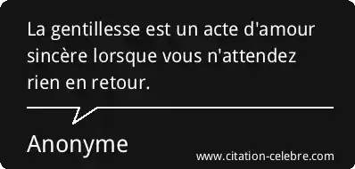 La gentillesse est un acte d'amour sincère lorsque vous n'attendez rien en retour.
