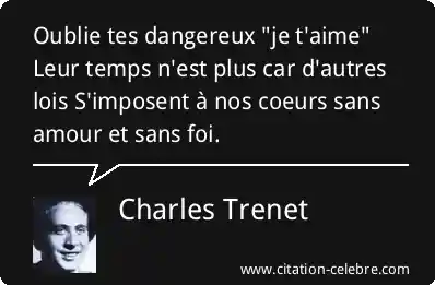 Oublie tes dangereux "je t'aime" Leur temps n'est plus car d'autres lois S'imposent à nos coeurs sans amour et sans foi.