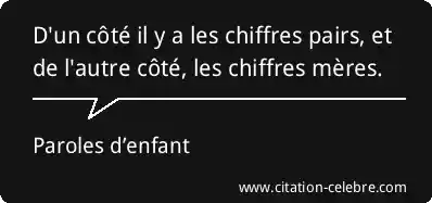 D'un côté il y a les chiffres pairs, et de l'autre côté, les chiffres mères.