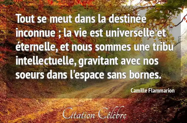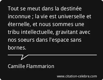 Tout se meut dans la destinée inconnue ; la vie est universelle et éternelle, et nous sommes une tribu intellectuelle, gravitant avec nos soeurs dans l'espace sans bornes.