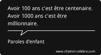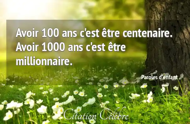 Avoir 100 ans c'est être centenaire. Avoir 1000 ans c'est être millionnaire.