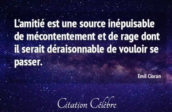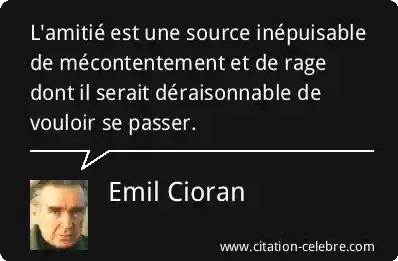 L'amitié est une source inépuisable de mécontentement et de rage dont il serait déraisonnable de vouloir se passer.