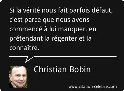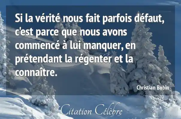 Si la vérité nous fait parfois défaut, c'est parce que nous avons commencé à lui manquer, en prétendant la régenter et la connaître.
