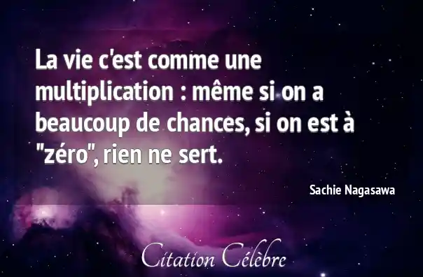 La vie c'est comme une multiplication : même si on a beaucoup de chances, si on est à "zéro", rien ne sert.