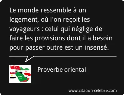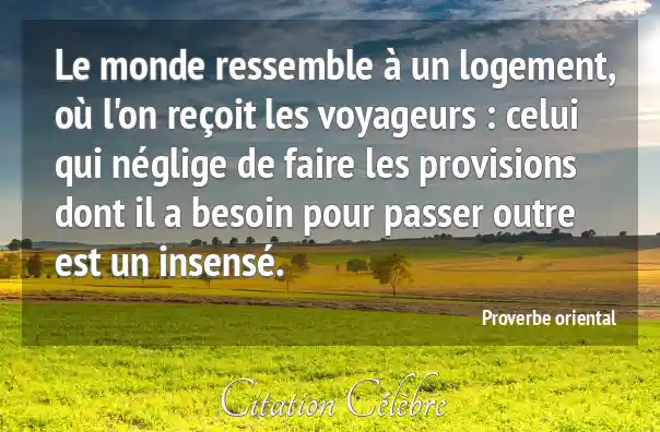 Le monde ressemble à un logement, où l'on reçoit les voyageurs : celui qui néglige de faire les provisions dont il a besoin pour passer outre est un insensé.