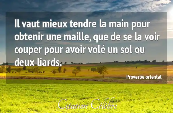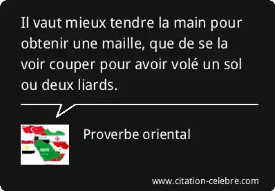 Proverbe  Oriental Avoir : Il vaut mieux tendre la main pour obtenir une maille,...