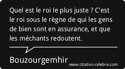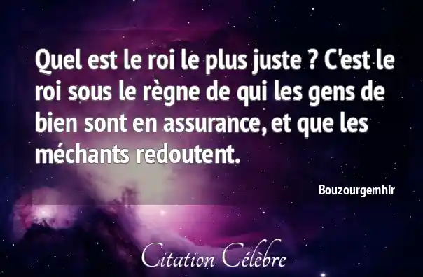 Quel est le roi le plus juste ? C'est le roi sous le règne de qui les gens de bien sont en assurance, et que les méchants redoutent.