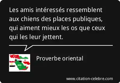 Les amis intéressés ressemblent aux chiens des places publiques, qui aiment mieux les os que ceux qui les leur jettent.