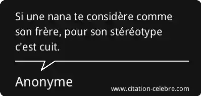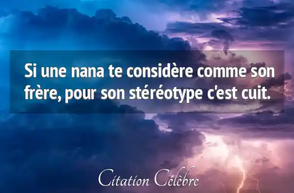 Si une nana te considère comme son frère, pour son stéréotype c'est cuit.
