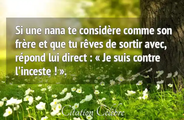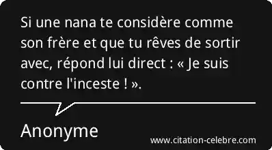 Si une nana te considère comme son frère et que tu rêves de sortir avec, répond lui direct : « Je suis contre l'inceste ! ».