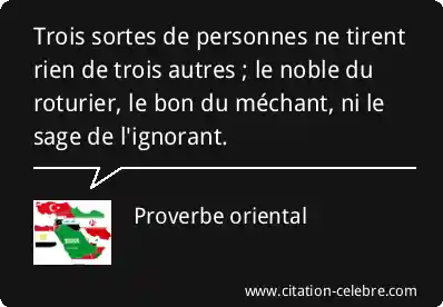 Trois sortes de personnes ne tirent rien de trois autres ; le noble du roturier, le bon du méchant, ni le sage de l'ignorant.