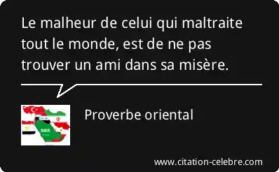 Le malheur de celui qui maltraite tout le monde, est de ne pas trouver un ami dans sa misère.