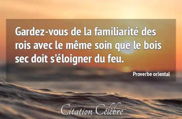 Gardez-vous de la familiarité des rois avec le même soin que le bois sec doit s'éloigner du feu.