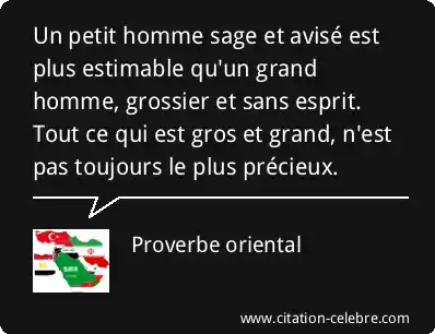 Un petit homme sage et avisé est plus estimable qu'un grand homme, grossier et sans esprit. Tout ce qui est gros et grand, n'est pas toujours le plus précieux.