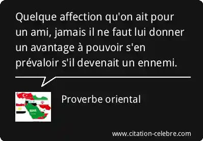 Quelque affection qu'on ait pour un ami, jamais il ne faut lui donner un avantage à pouvoir s'en prévaloir s'il devenait un ennemi.