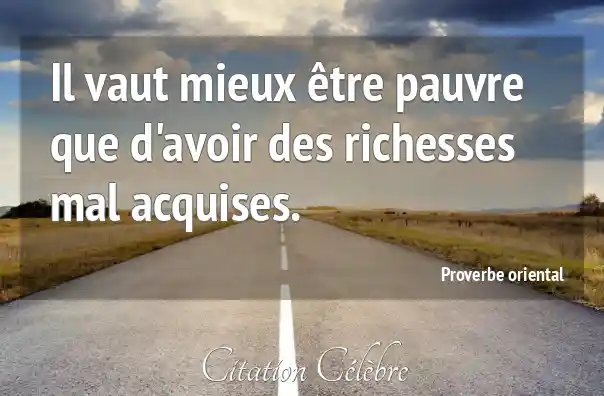 Il vaut mieux être pauvre que d'avoir des richesses mal acquises.