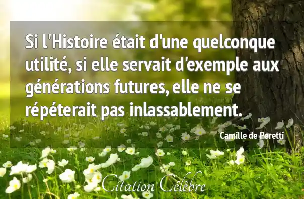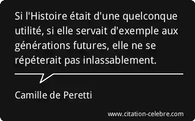 Si l'Histoire était d'une quelconque utilité, si elle servait d'exemple aux générations futures, elle ne se répéterait pas inlassablement.