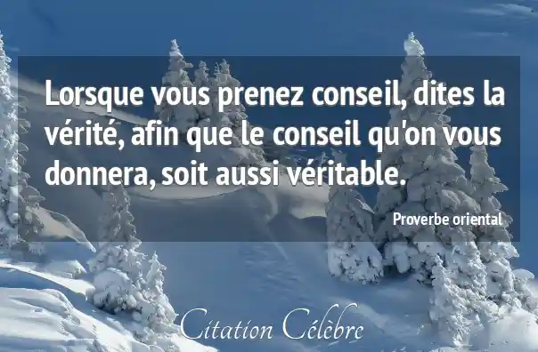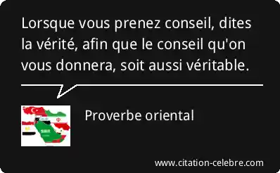 Lorsque vous prenez conseil, dites la vérité, afin que le conseil qu'on vous donnera, soit aussi véritable.