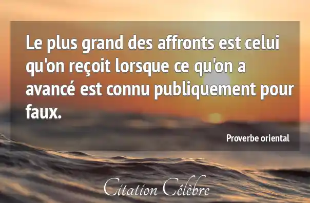 Le plus grand des affronts est celui qu'on reçoit lorsque ce qu'on a avancé est connu publiquement pour faux.