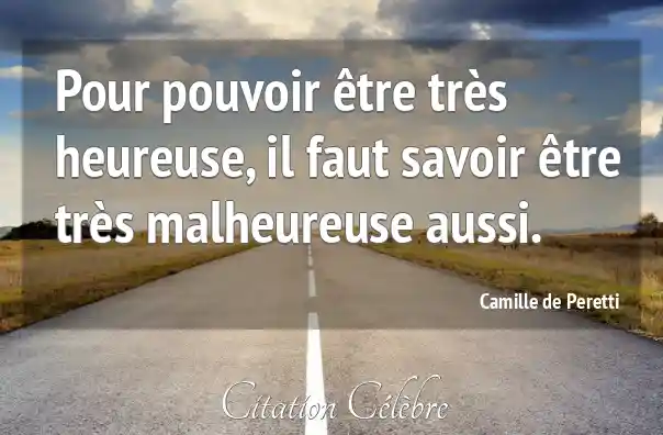 Pour pouvoir être très heureuse, il faut savoir être très malheureuse aussi.