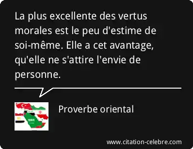 La plus excellente des vertus morales est le peu d'estime de soi-même. Elle a cet avantage, qu'elle ne s'attire l'envie de personne.