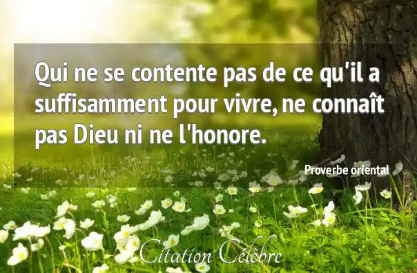 Qui ne se contente pas de ce qu'il a suffisamment pour vivre, ne connaît pas Dieu ni ne l'honore.