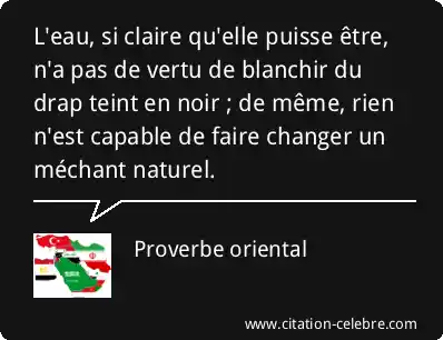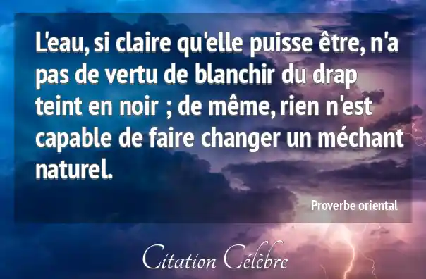 L'eau, si claire qu'elle puisse être, n'a pas de vertu de blanchir du drap teint en noir ; de même, rien n'est capable de faire changer un méchant naturel.
