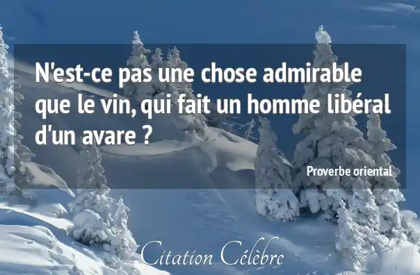 N'est-ce pas une chose admirable que le vin, qui fait un homme libéral d'un avare ?
