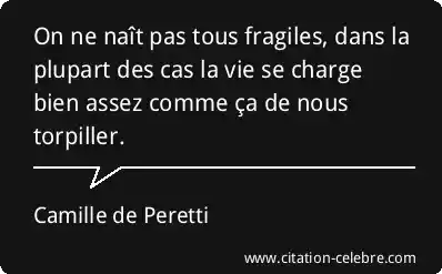On ne naît pas tous fragiles, dans la plupart des cas la vie se charge bien assez comme ça de nous torpiller.
