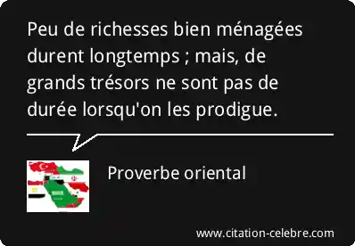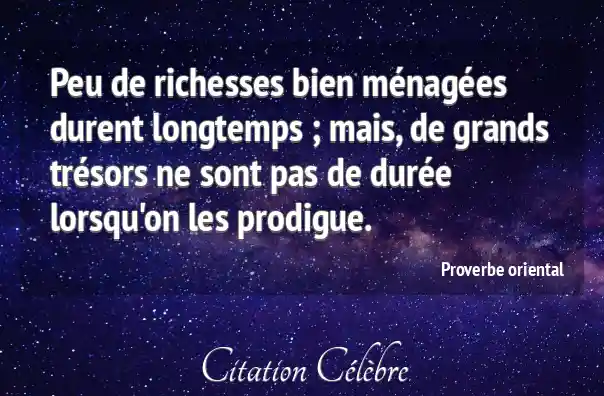 Peu de richesses bien ménagées durent longtemps ; mais, de grands trésors ne sont pas de durée lorsqu'on les prodigue.