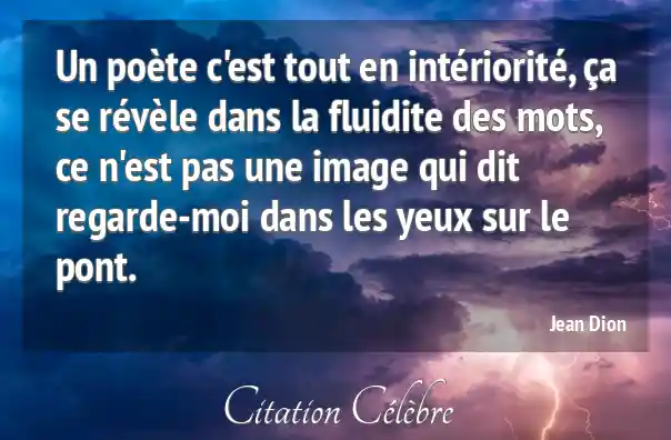 Un poète c'est tout en intériorité, ça se révèle dans la fluidite des mots, ce n'est pas une image qui dit regarde-moi dans les yeux sur le pont.