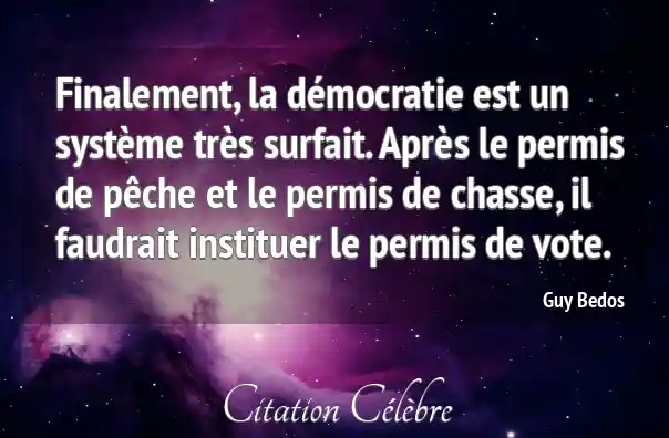 Finalement, la démocratie est un système très surfait. Après le permis de pêche et le permis de chasse, il faudrait instituer le permis de vote.