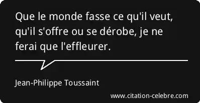 Que le monde fasse ce qu'il veut, qu'il s'offre ou se dérobe, je ne ferai que l'effleurer.