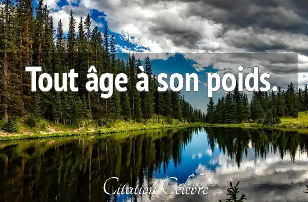 Tout âge à son poids.