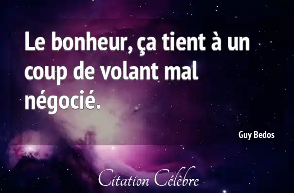 Le bonheur, ça tient à un coup de volant mal négocié.