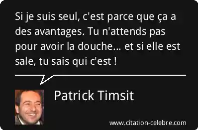 Si je suis seul, c'est parce que ça a des avantages. Tu n'attends pas pour avoir la douche... et si elle est sale, tu sais qui c'est !