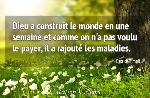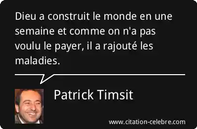 Citation Patrick Timsit dieu : Dieu a construit le monde en une semaine et comme...
