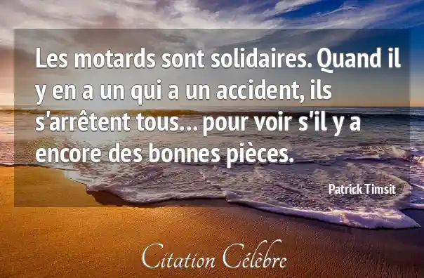 Les motards sont solidaires. Quand il y en a un qui a un accident, ils s'arrêtent tous... pour voir s'il y a encore des bonnes pièces.