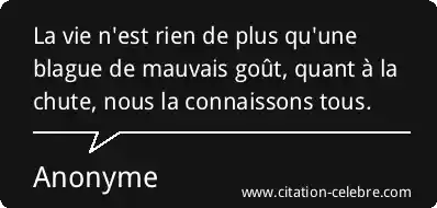 La vie n'est rien de plus qu'une blague de mauvais goût, quant à la chute, nous la connaissons tous.