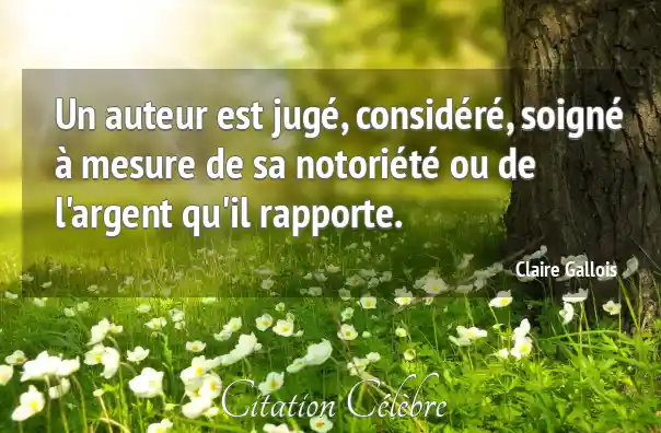 Un auteur est jugé, considéré, soigné à mesure de sa notoriété ou de l'argent qu'il rapporte.