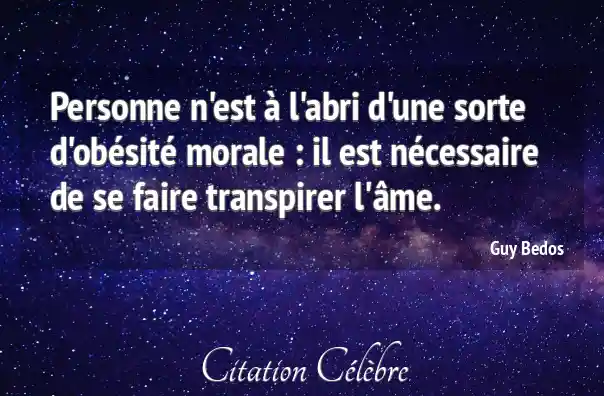 Personne n'est à l'abri d'une sorte d'obésité morale : il est nécessaire de se faire transpirer l'âme.