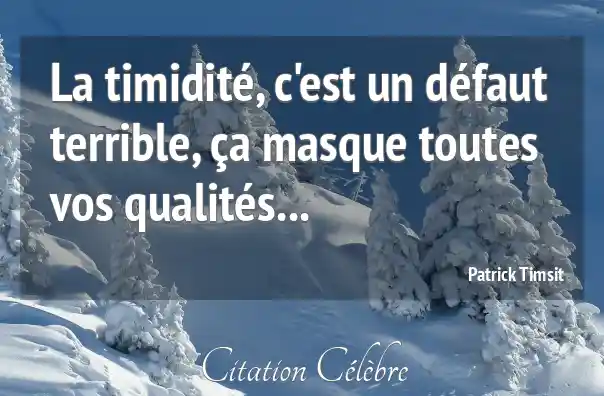 La timidité, c'est un défaut terrible, ça masque toutes vos qualités...