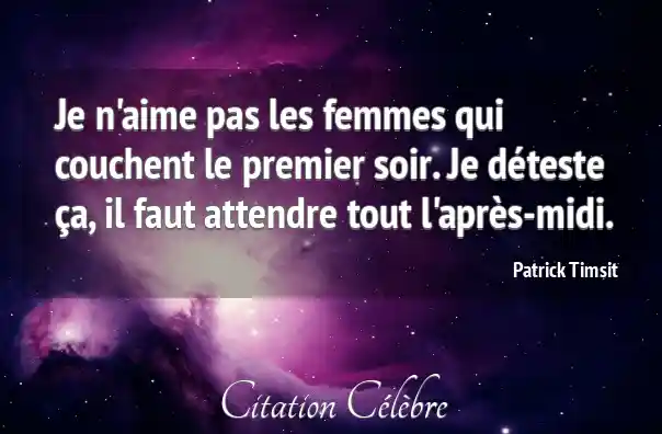 Je n'aime pas les femmes qui couchent le premier soir. Je déteste ça, il faut attendre tout l'après-midi.