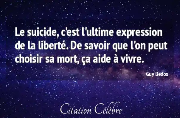 Le suicide, c'est l'ultime expression de la liberté. De savoir que l'on peut choisir sa mort, ça aide à vivre.