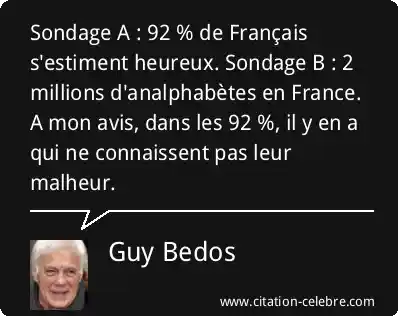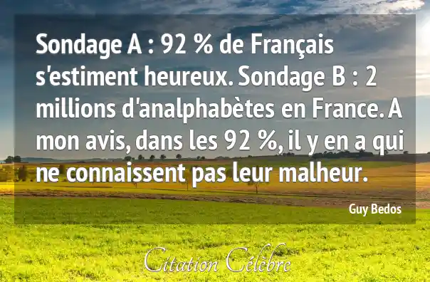 Sondage A : 92 % de Français s'estiment heureux. Sondage B : 2 millions d'analphabètes en France. A mon avis, dans les 92 %, il y en a qui ne connaissent pas leur malheur.