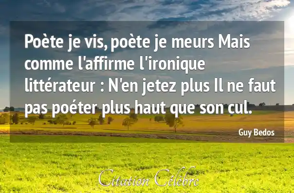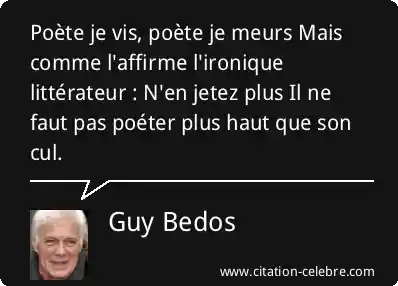 Poète je vis, poète je meurs Mais comme l'affirme l'ironique littérateur : N'en jetez plus Il ne faut pas poéter plus haut que son cul.
