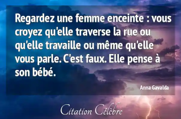 Regardez une femme enceinte : vous croyez qu'elle traverse la rue ou qu'elle travaille ou même qu'elle vous parle. C'est faux. Elle pense à son bébé.